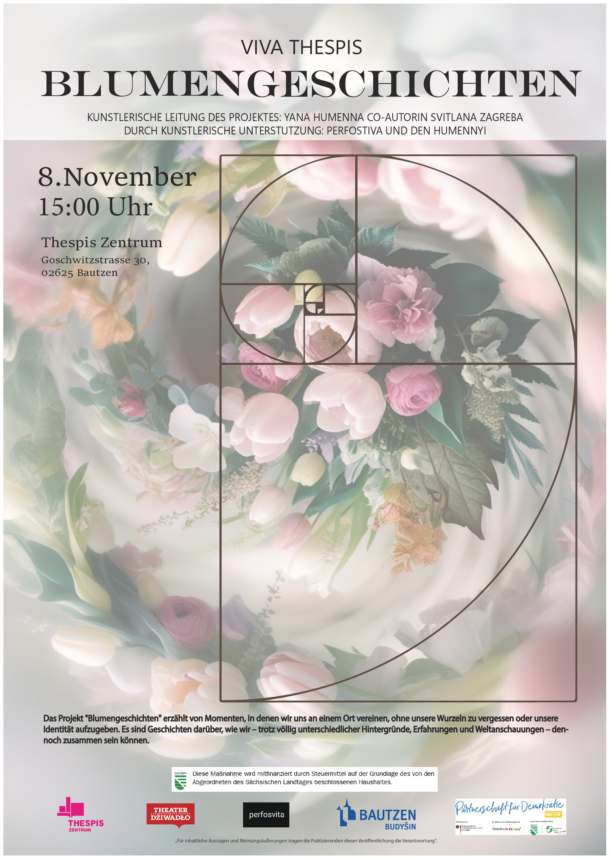 Am 10. März 2025 um 17:00 Uhr präsentierte das Thespis Zentrum in Kooperation mit dem Sächsischen Ausländerbeauftragten Gerd Mackenroth die interkulturelle Performance „Im Osten geboren“ , ein besonderes Erzählcafé mit Frauen deutscher, kurdischer, libanesischer, sorbischer und ukrainischer Herkunft.