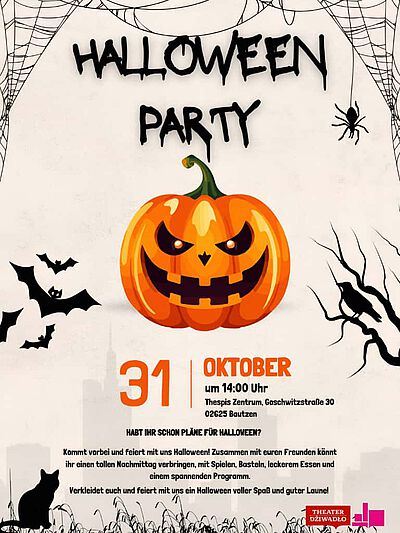 Komm vorbei am 31. Oktober ab 14:00 Uhr in der Goschwitzstraße 30, bring deine Freunde mit und lass dich von unserem schaurig-schönen Programm überraschen.