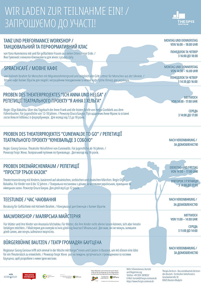 Mach mit! Hier ist die Chance für alle, die in Bautzen und Umgebung leben, Theater auszuprobieren! Wir möchten Theaterprojekte so bunt und vielfältig wie möglich verwirklichen. Alle sind auf, vor und hinter der transkulturellen Bühne willkommen: Komm wie du bist, mach was du kannst!